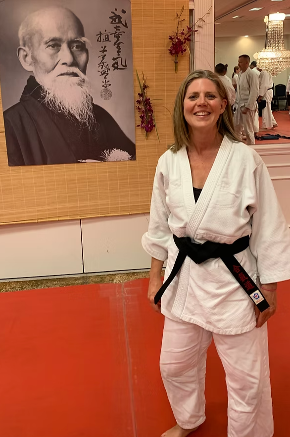 Ann O’Brien Sensei holds the rank of nidan (2nd degree black belt) with the USAF (United States Aikido Federation). Her teachers have included Peter Bernath Shihan, Penny Bernath Shihan, Mike Jones Sensei, Hiroshi Ikeda Shihan, Tres Hofmeister Shihan, and more.